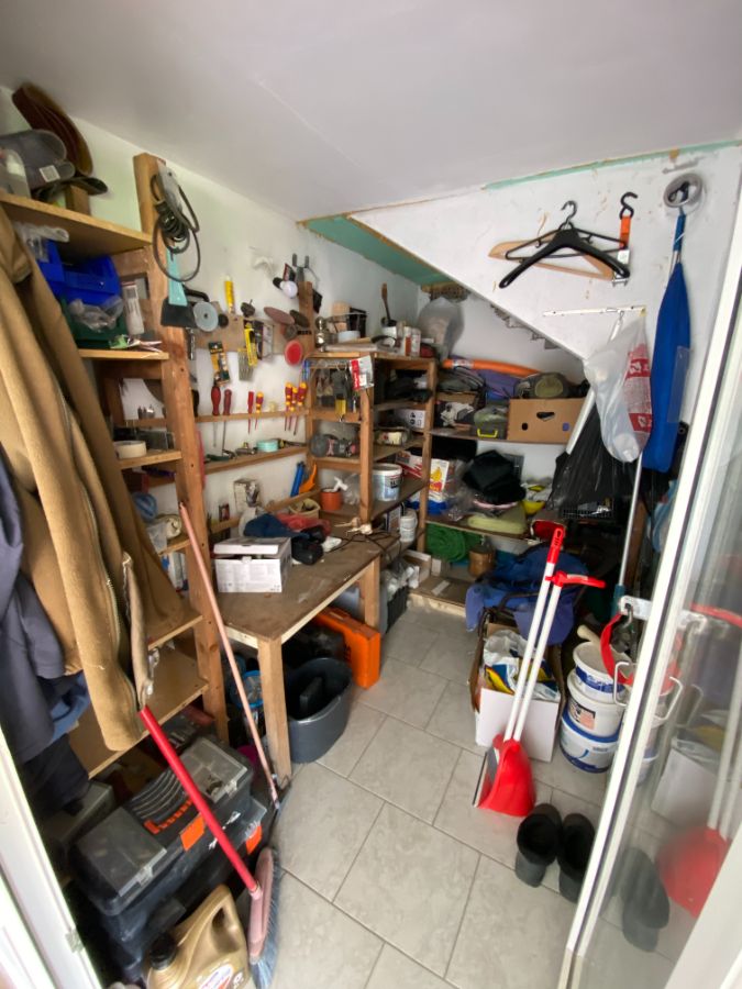 1 этаж – летняя гостиная-кухня (30 кв.м.), терраса (20 кв.м.), коридор при входе и лестница на 2-й этаж, 2 гостевые спальни, ванная комната с туалетом, кладовое помещение, мастерская. Пол во всех помещених – керамическая плитка.